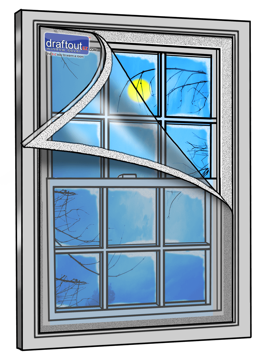 The Draftout EZTM window cover is the best clear window vinyl you can buy to insulate cold leaky windows to reduce your heating bills!